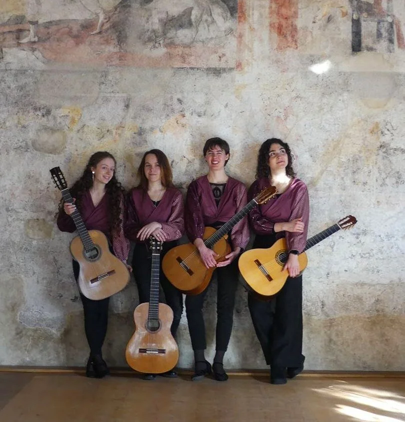 Wir sind vier Gitarristinnen, die sich während ihres Studiums an der Hochschule für Musik „Carl Maria von Weber“ 2021 in Dresden zusammengeschlossen haben. Wir kombinieren klassische Gitarrenmusik beispielsweise von Debussy mit Jazz Arrangements von Pat Matheny.
